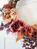 The wreath is hand cut, shaped and formed using an 18in grapevine wreath. Total finished measurements are 21 wide by 30 inches in length